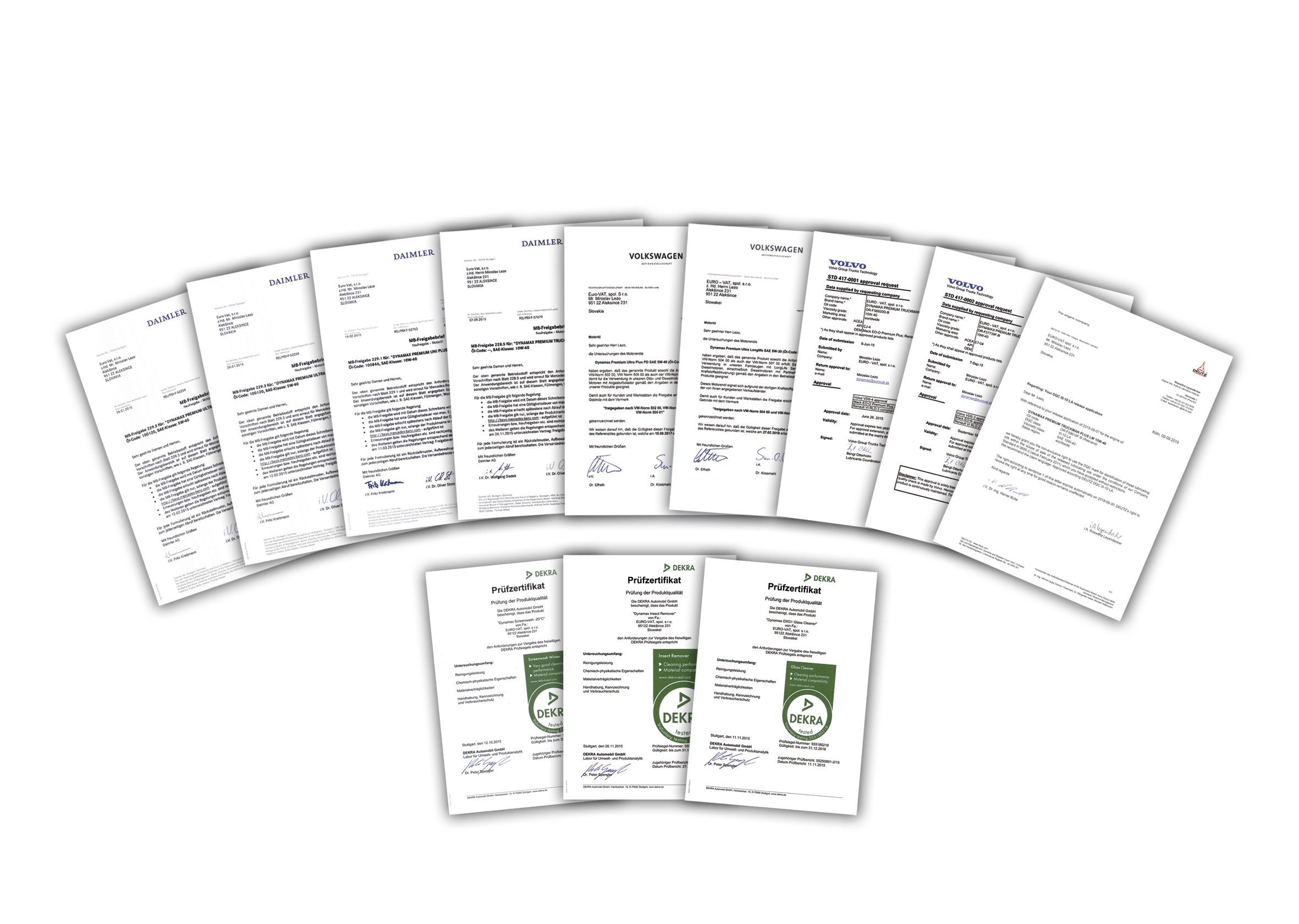 Okrem certifikátov sa Dynamax teší svojej rozrastajúcej sa zbierke schválení na oleje od viacerých automobilových značiek.