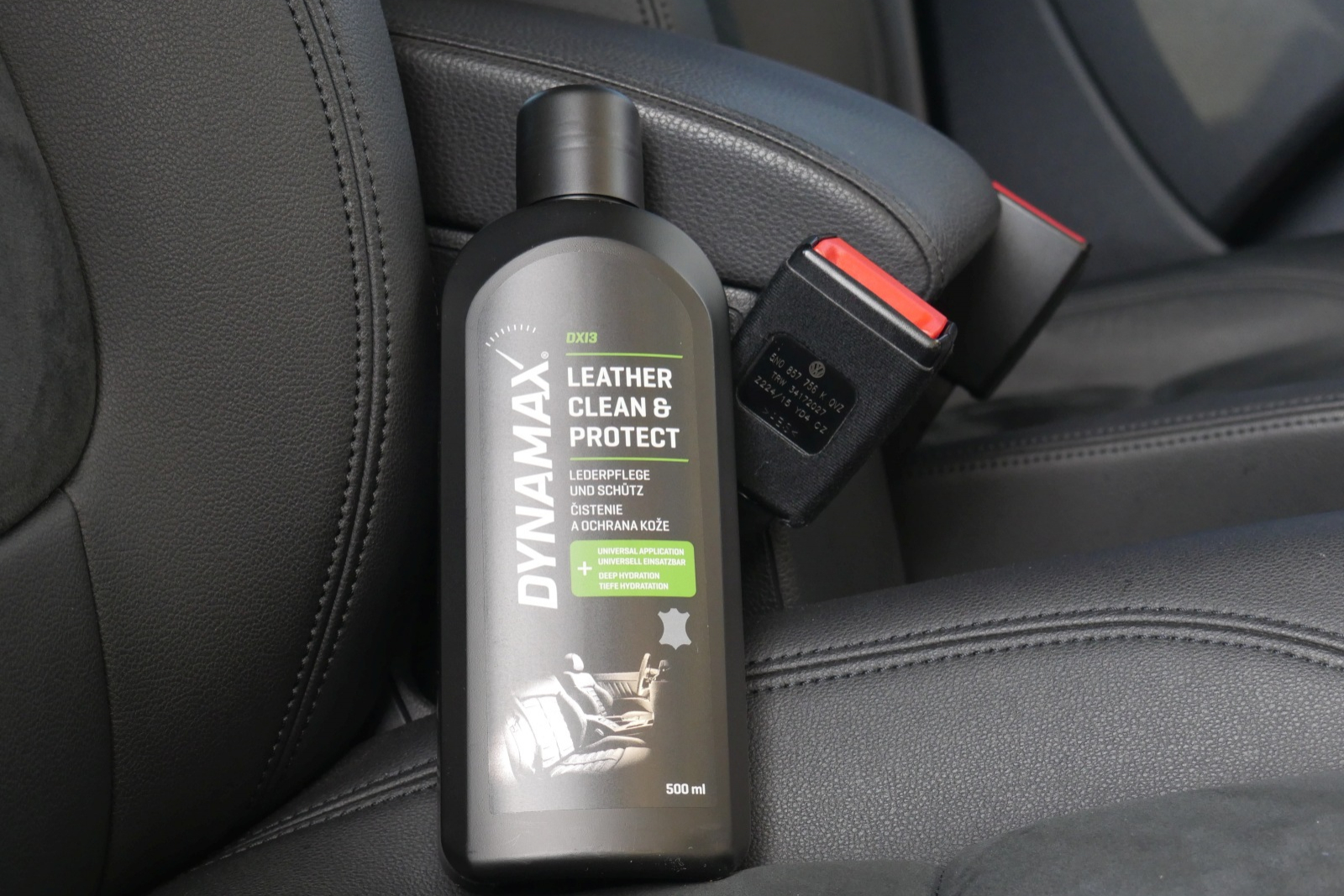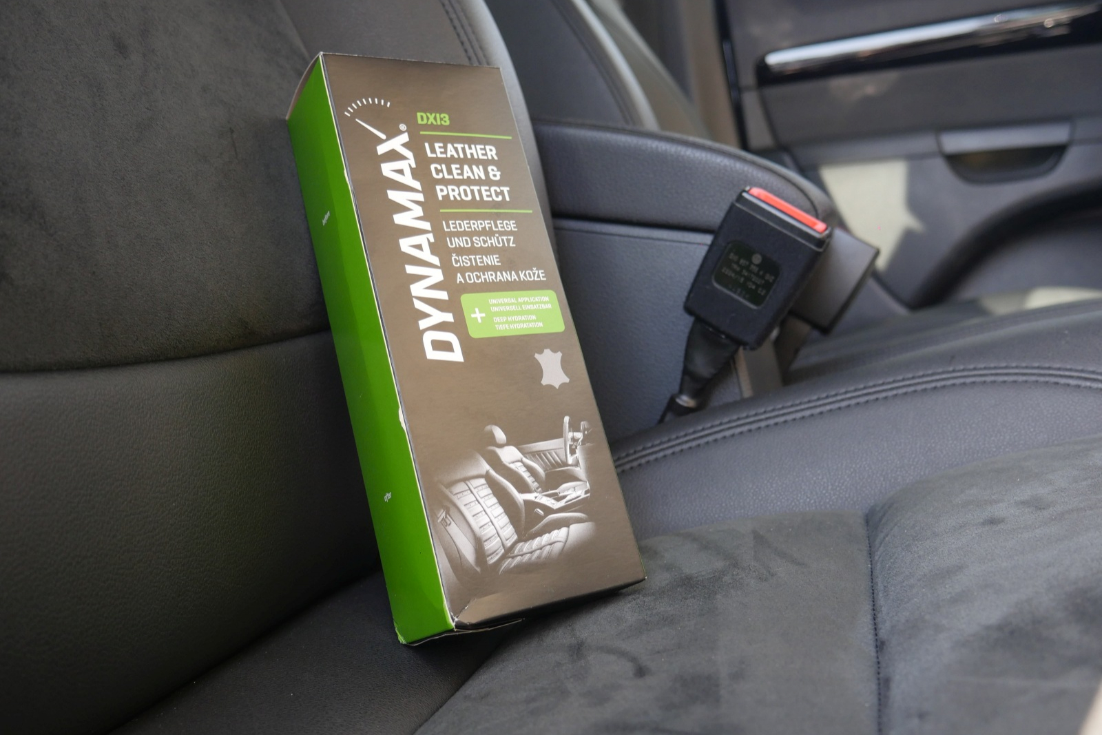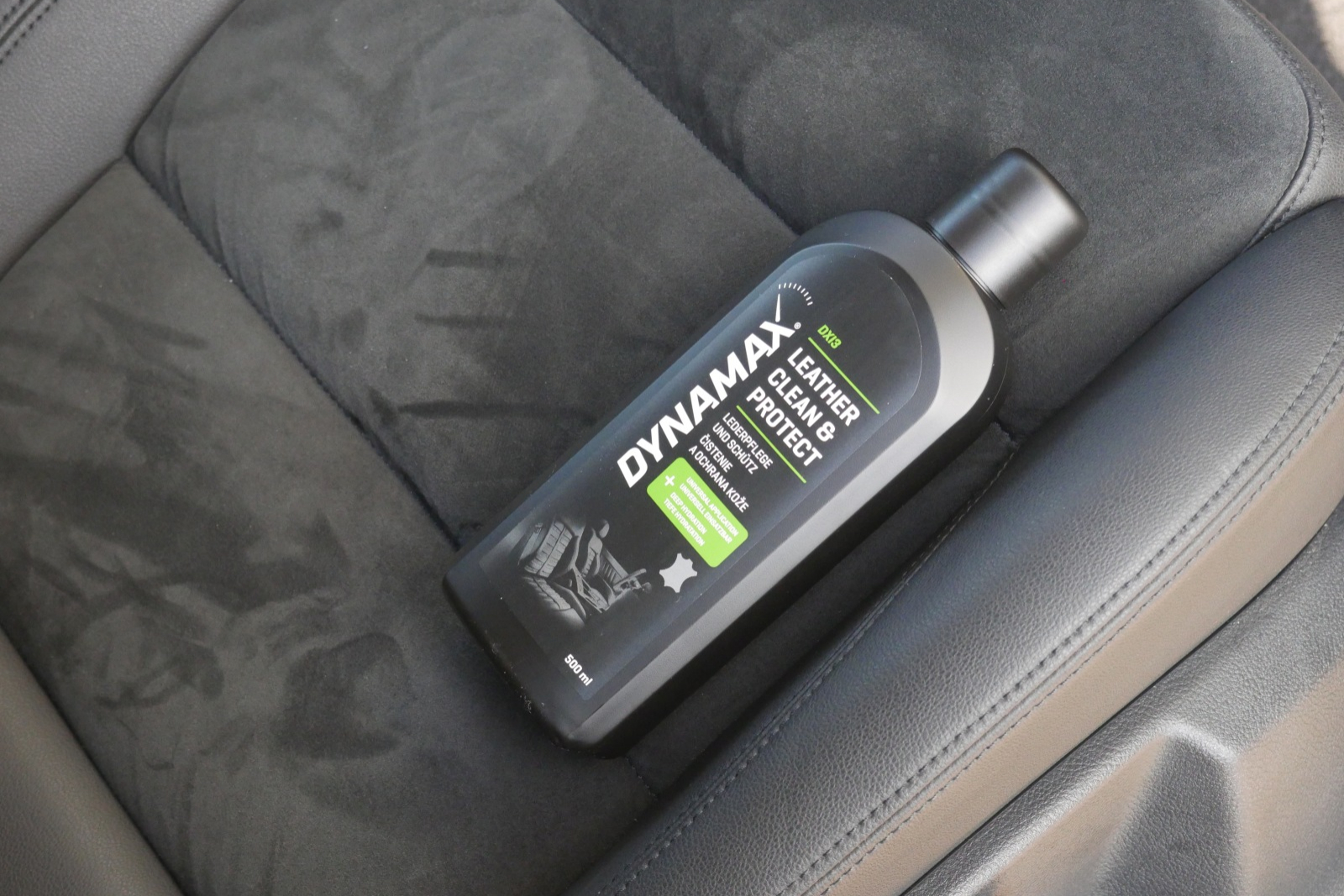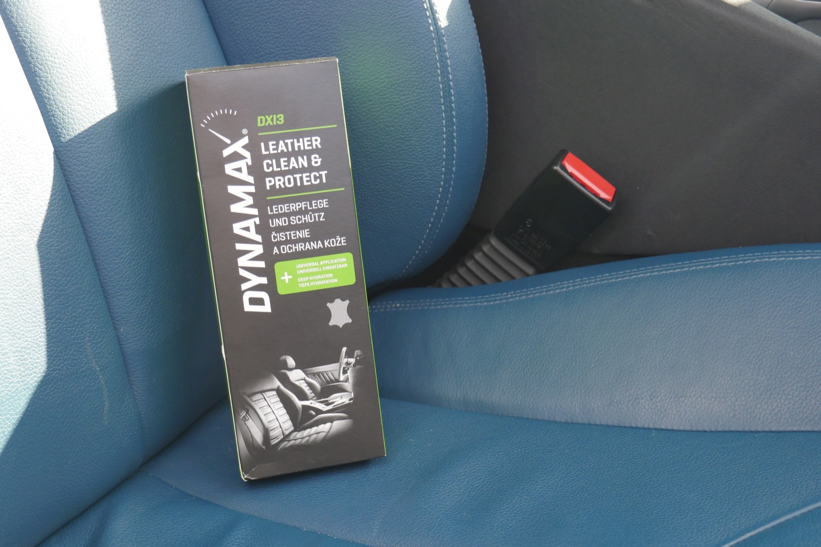 Čistič na kožu a jej ochranu DYNAMAX pomôže starať sa o ňu aj jej prinavrátiť stratený lesk. Už samotné balenie slovenského produktu je na veľmi vysokej úrovni. Nevedeli by ste povedať, či je produkt zo západnej Európy, z Ameriky, alebo inej vyspelej krajiny. Tento zámer vyšiel tvorcom skvelo a budí dôveru. Na bočnej strane obalu je znázornená drsnosť povrchu pred a po opracovaní. Okrem kožených sedadiel môžete s prípravkom čistiť a chrániť aj napríklad kožený odev alebo batožinu.