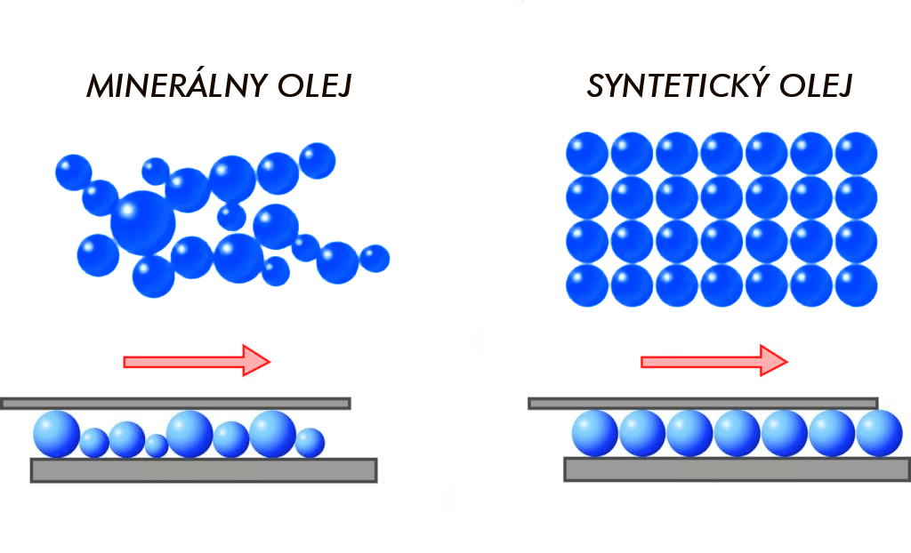 Pri výrobe minerálneho oleja nie je možné dosiahnuť, aby mali všetky molekuly rovnakú veľkosť. Vzhľadom na to, že jeho reťazce obsahujú molekuly rozličných veľkostí, sa olejový film dokáže ľahšie pretrhnúť. Nehovoriac o tom, že olej má vyššiu viskozitu a pri trení sa rýchlejšie prehrieva. Ak sa veľmi zohreje, je náchylný na degradáciu. Začne sa skôr rozkladať, zvyšuje sa riziko tvorby usadenín a klesajú jeho optimálne mazacie schopnosti.