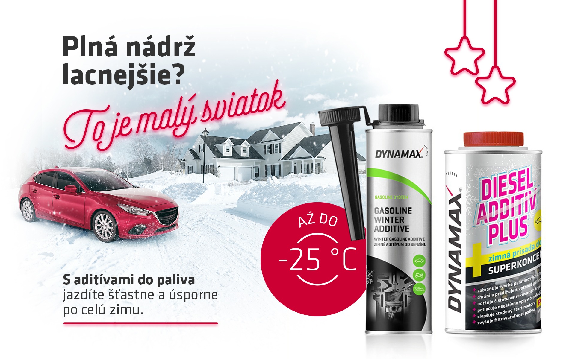 Práve zimné aditívum DYNAMAX do benzínu ktoré komerčne predávajú pod anglickým označením Gasoline Winter Additive zamedzuje tvorbe mikrokryštálov ľadu. Slúži tak na prevenciu pred usadzovaním vody v palivovom systéme, čo je príznačné pre zimné obdobie a krátke trasy. Ďalej tiež znižuje koróziu celého systému a kyslosť vzniknutú oxidáciou. Práve voda je najväčším strašiakom benzínových motorov v zime.
